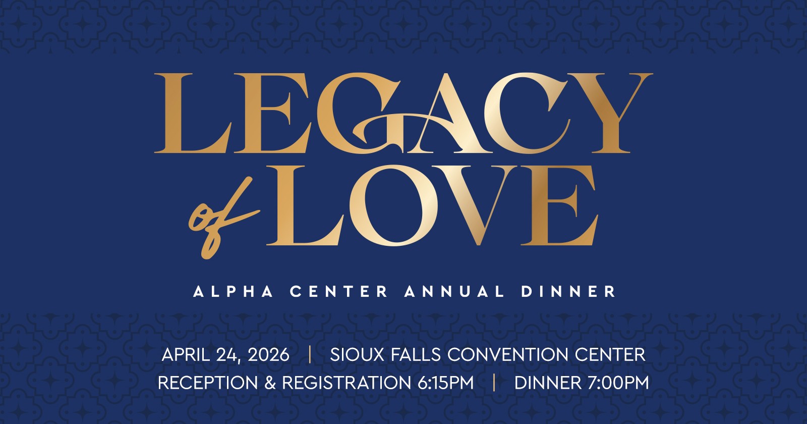 Alpha Center warmly invites you to be our guest at our Legacy of Love Annual Dinner. Come and be part of an inspiring evening as we reflect on God’s work and look ahead to the exciting things He has in store for us in the future.